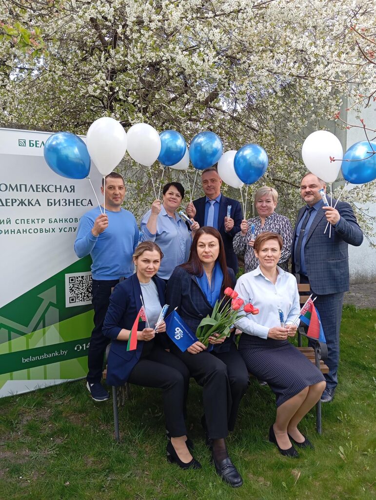 И в канун празднования 1 Мая коллектив ЦБУ №115 ОАО «АСБ Беларусбанк» в г. Каменец поддержал концепцию «Профсоюзный четверг». Сотрудники ЦБУ пришли на работу в одежде оттенков синего цвета и получили в подарок сладкие угощения.